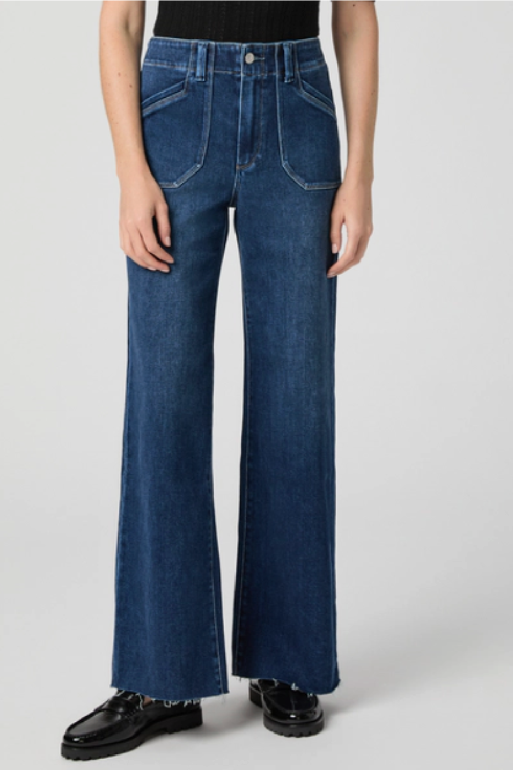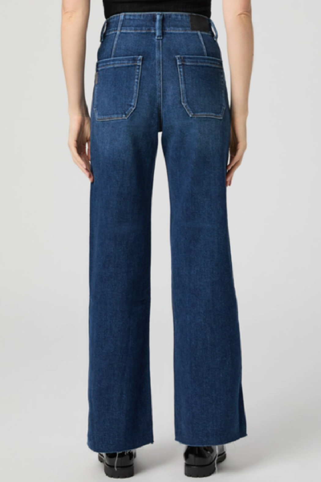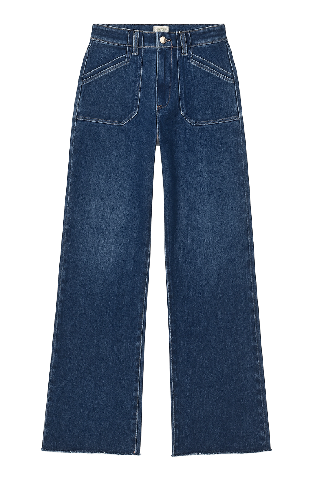 Anessa’s 31" high-rise dark wash jeans come with practical utility pockets and a trendy raw hem. With their worn-in denim vibe, these jeans add a fun, laid-back flair to any outfit.