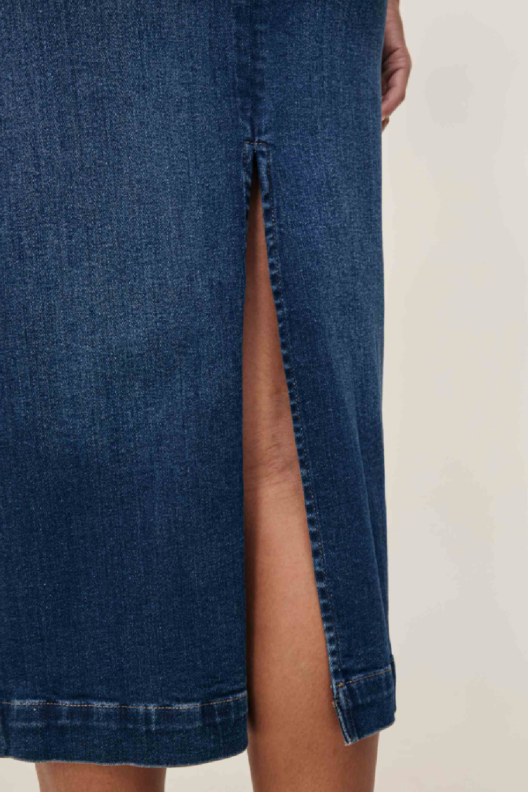 The Esme Dress is your new go-to for effortless style with a playful edge. This sleeveless denim midi dress hugs your curves in all the right places, creating a flattering silhouette that moves with you. Featuring a bold, visible back zipper and sharp front seams, it adds a touch of modern detail to classic denim.