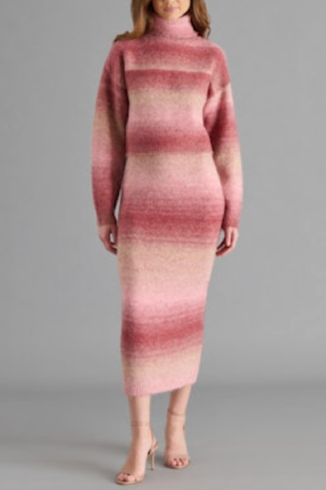 A stunning stripe ombre print flowing down a sleek pencil silhouette, this knit has a fuzzy fabric that feels as good as it looks. The pull-on waistband keeps things comfy and fuss-free, dress it up with a leather jacket or pair with matching sweater. Whether you're conquering the office or exploring the weekend, this versatile skirt adapts to every occasion with effortless charm.
