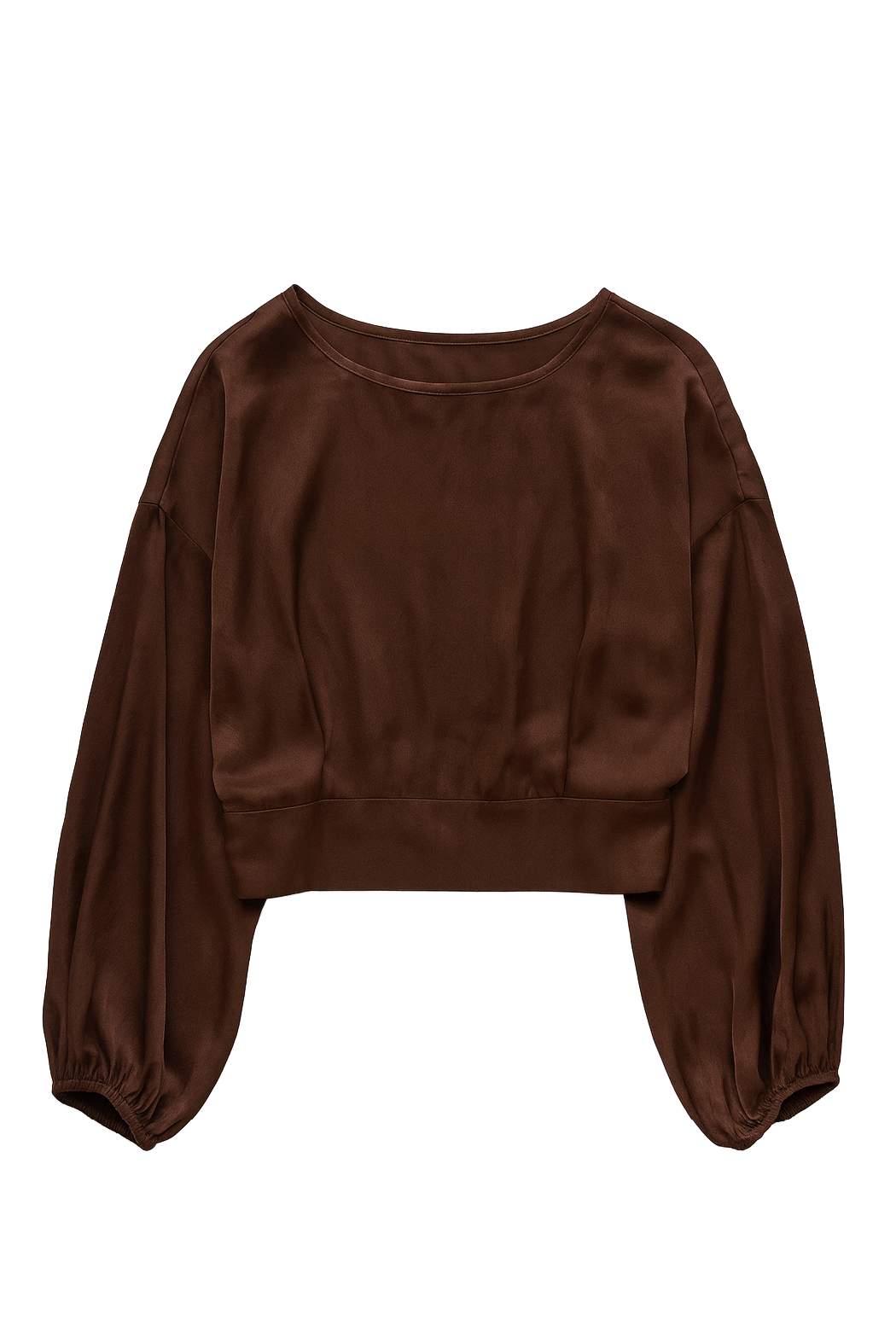 This blouse features a breezy elastic hem that lets you pick your perfect crop length. It’s got a scoop neckline and relax