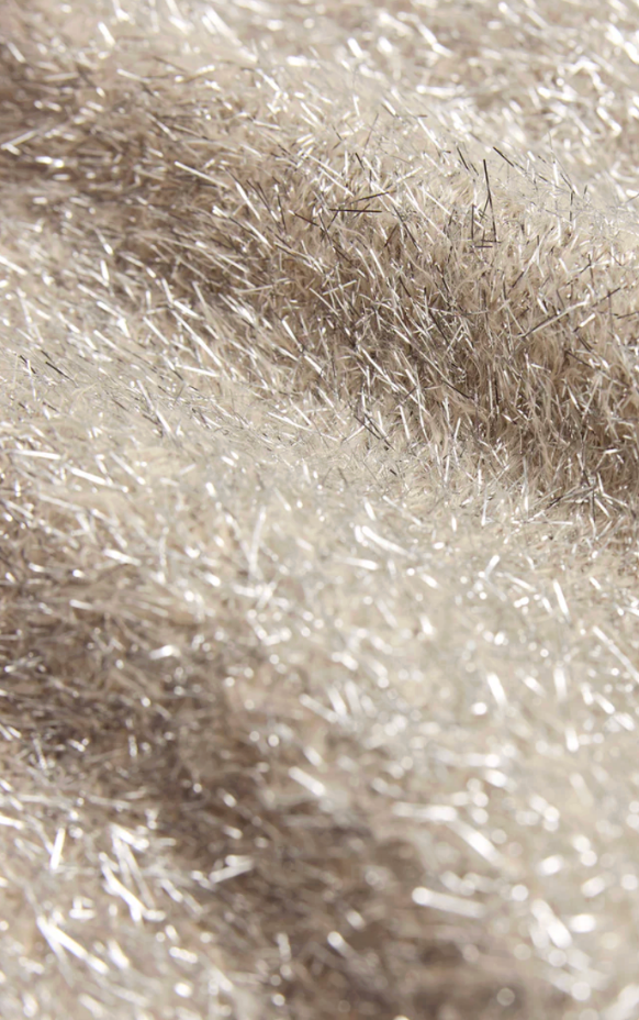 Fabric Content: Lurex Sweater Yarn: 77% Polyester, 18% Metallic, 5% Nylon
