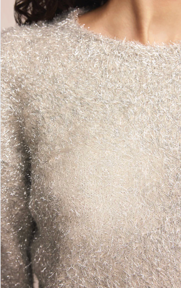 Slip into effortless style with this shimmering boyfriend sweater that's equal parts cozy and cool. The metallic-threaded yarn catches the light beautifully, while the relaxed silhouette keeps things laid-back and comfortable. Lightweight enough to layer over anything, it's your new go-to for adding a touch of sparkle to casual days and nights alike.
